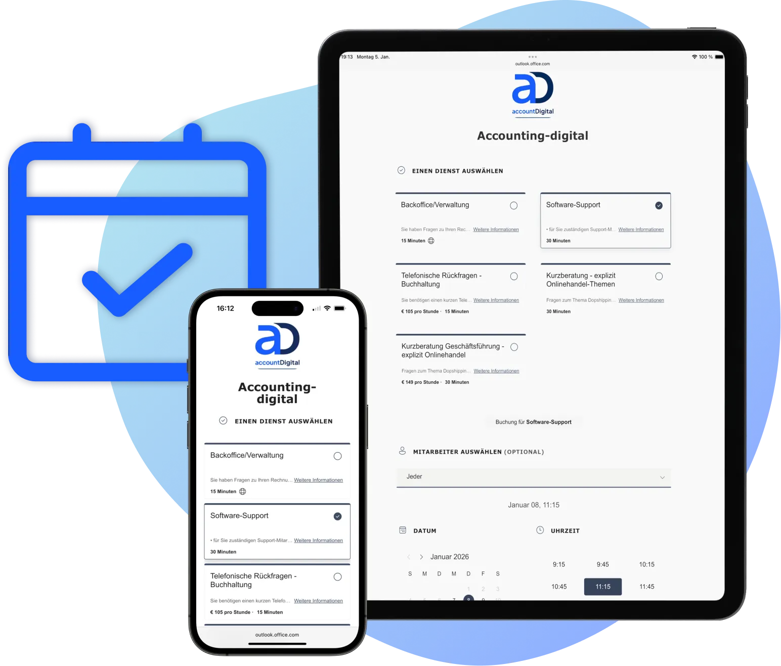 Solltest du einen Termin außerhalb unserer regulären Zeiten wünschen, sende uns bitte eine Anfrage per E-Mail an info@accounting-digital.de. Wir prüfen dann die Möglichkeiten und kommen so schnell wie möglich auf dich zurück.